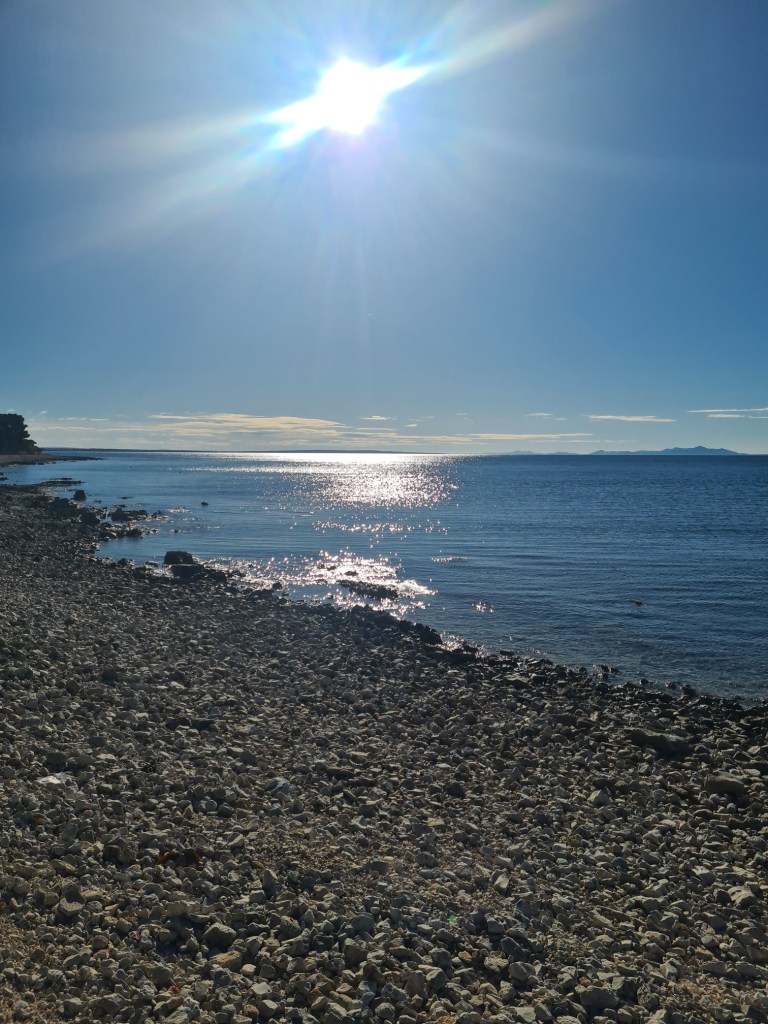 Tamna baršunasta noć spušta se nad more. Jedino još mjesec s prostranog nebeskog svoda svojim zrakama miluje usnule valove, koji u svom snu nježno ljube kamenje na obali. Vjetrić propiruje povijene grane smreke i usnule grmove pinije. I evo ga sada se poigrava blagom pjenom vala i kao da će odnijeti tu čipku satkanu od morskih kapi na naborana lica planina. Usnulo je more uz uspavanku cvrčka sviranu na najljepšoj struni.